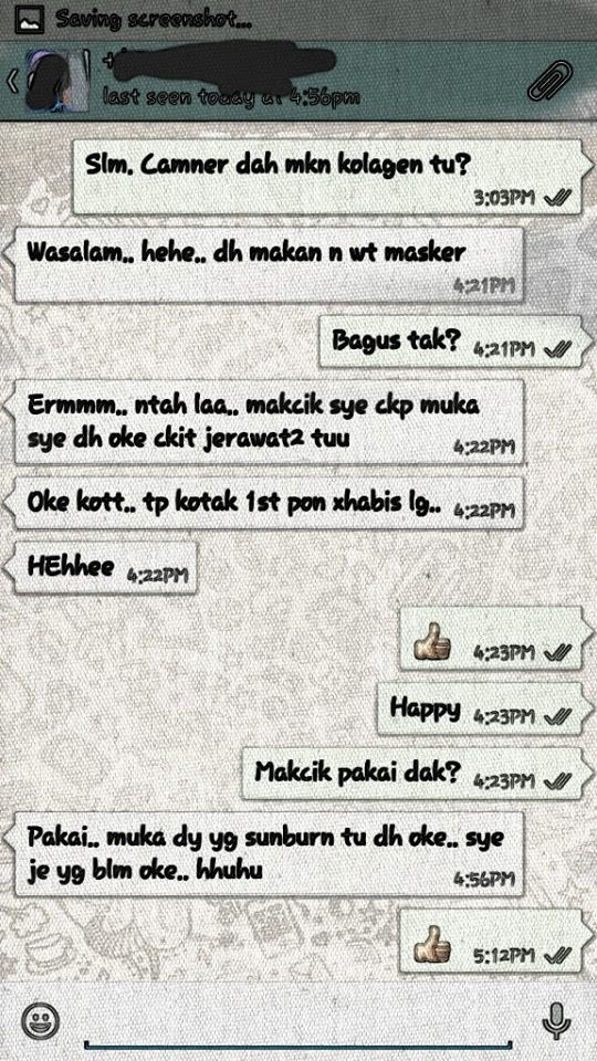 Alhamdulillah, lepas tengok perubahan pada Mak dan Mak Mentua, barulah Maria sedar tentang kepentingan Collagen kepada tubuh badan. Ianya bukan hanya untuk cantik ye, tapi untuk kesihatan juga sebenarnya.