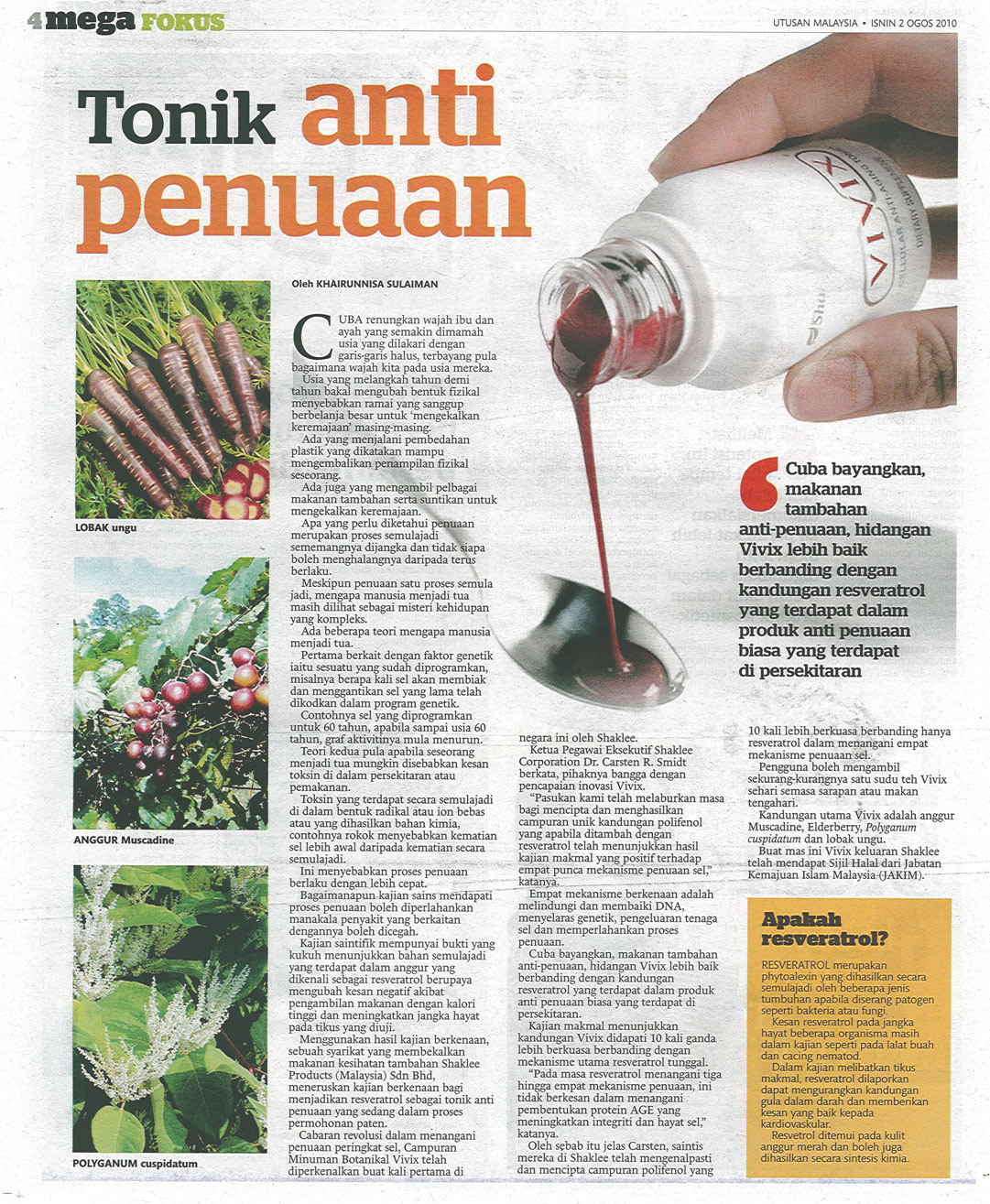 Khasiat vivix pun ada masuk di dalam Utusan Malaysia seperti