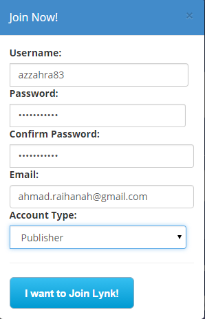1. Mesti mendaftar di lynk.my (aktifkan username dan emel anda)