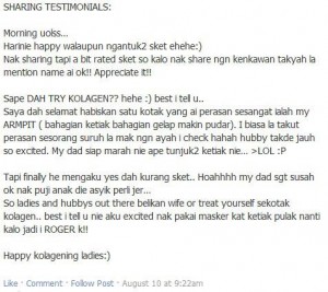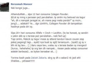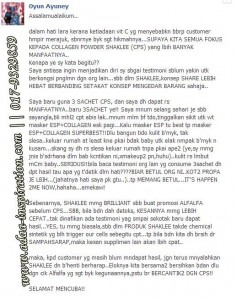 Anda baca sendiri testimonial pengguna COLLAGEN POWDER SHAKLEE..banyak lagi yang saya tak upload..nia antara testimoni yang powerrr
