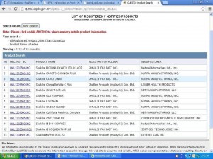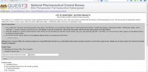 Adalah Produk mungkin boleh semak di sini list info produk untuk register dgn BIRO PENGAWALAN FARMASEUTIKAL KEBANGSAAN MALAYSIA menggunakan Quest3.