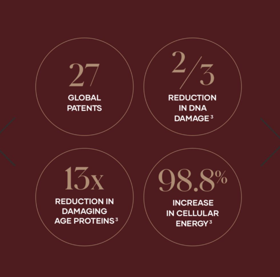 Tidak dapat ditandingi dalam potensi dan faedah anti-penuaannya, adunan unik bahan-bahan dalam Vivix ini terbukti secara saintifik untuk Melambatkan Penuaan di Peringkat Selular®, terbukti dengan kerosakan DNA yang kurang, mitokondria yang lebih padat dan lebih berfungsi, peningkatan pengeluaran tenaga selular, dan kehadiran protein AGE yang lebih sedikit.