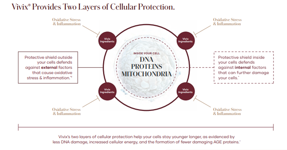 fungsi selular. Bahan utama dalam Vivix telah ditunjukkan dalam kajian makmal untuk melindungi DNA daripada kerosakan